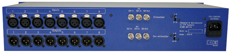 Der CTP EDA16 ist ein professioneller SDI-Videoverteilverstärker mit eingebettetem Audio. Er ermöglicht die zuverlässige Verteilung eines eingehenden SDI-Signals auf mehrere Ausgänge, ohne Qualitätsverlust. Das Gerät unterstützt die Einbettung und Extraktion von Audiosignalen und ist für den Einsatz in Broadcast- und Produktionsumgebungen konzipiert, wo stabile Signalweitergabe entscheidend ist.