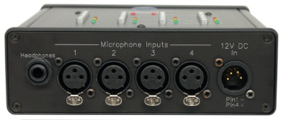 - Kopfhörerbuchse zur lokalen Überwachung der Mikrofonausgänge